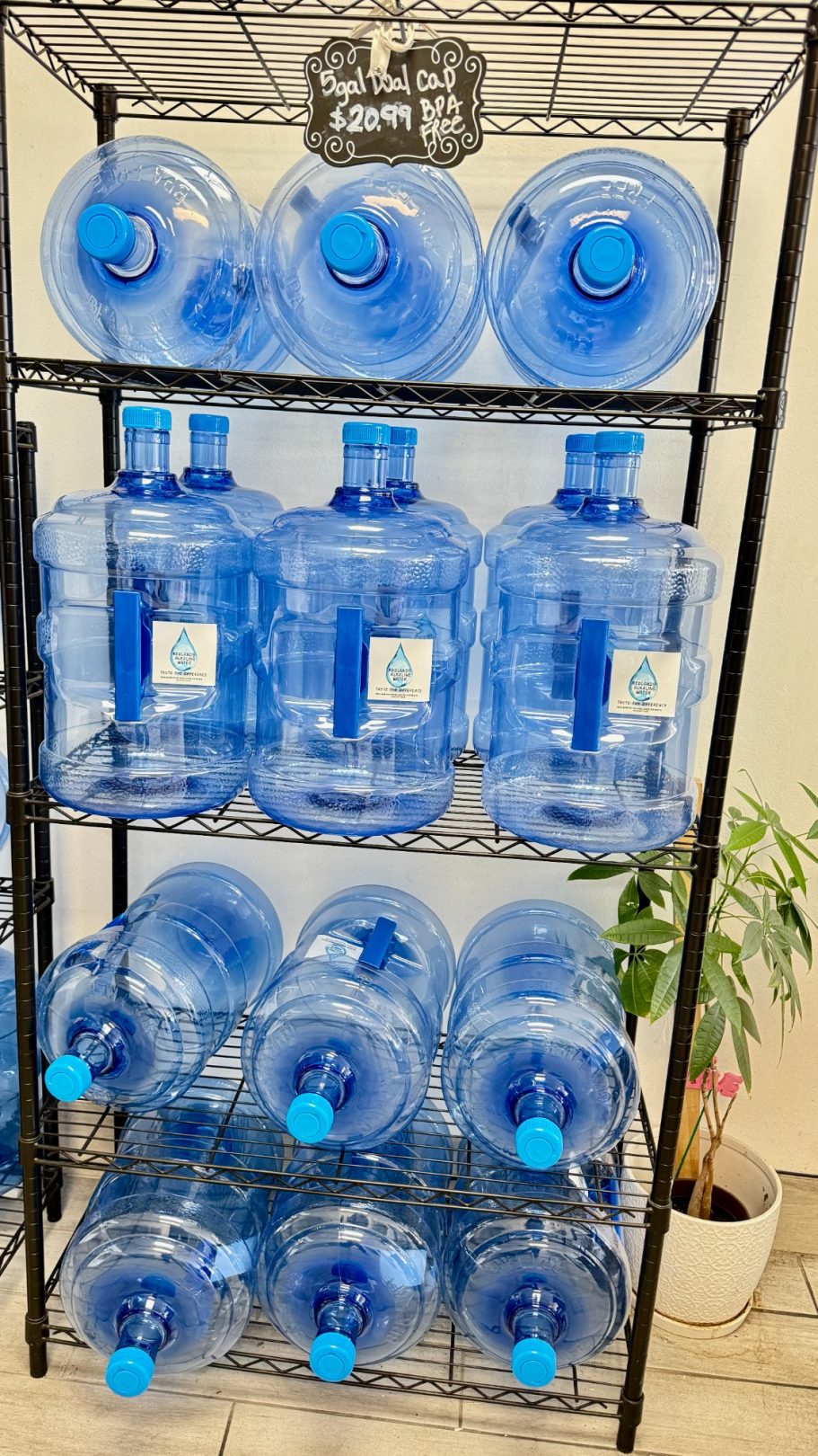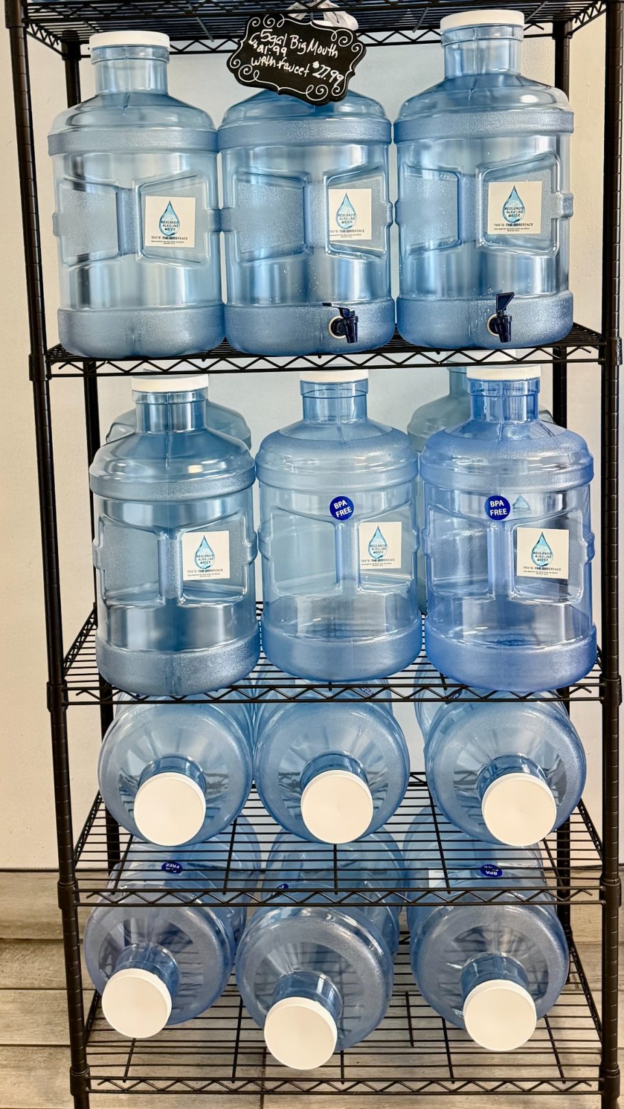 View our gallery showcasing the various bottle sizes available for fill-up, from 1 to 5 gallons or more. At Redlands Water Store, we offer a diverse selection of pre-purified and alkaline water options to cater to your individual tastes and hydration needs. Whether you require a small bottle for on-the-go convenience or a larger size for home or office use, our collection has you covered. Discover the perfect bottle size that aligns with your lifestyle and preferences, and enjoy refreshing hydration at its best.